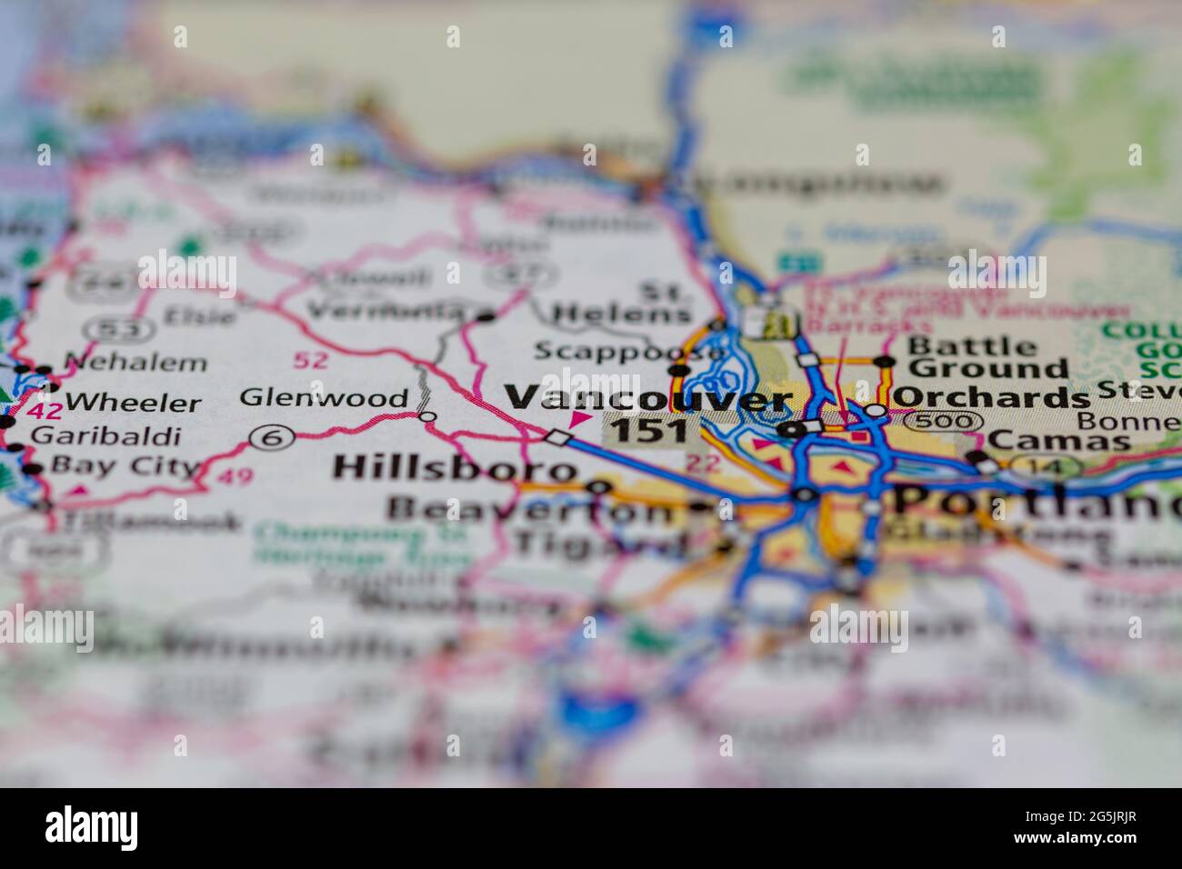 Vancouver Oregon USA shown on a Geography map or road map Stock